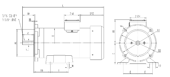 | Model No. | Power(HP) | Speed(RPM) | Arm Volt | NEMA FRAME | ENCL. | Current(Amp.) | Torque(In.Ibs) | App.Weights(Ibs) | |